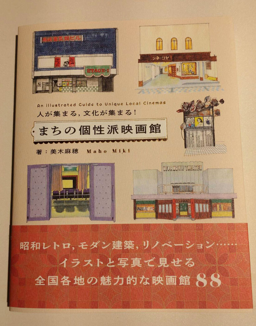 昭和レトロ・モダン建築・リノベーションなど、全国各地の個性豊かな劇場をイラストと写真を交えて紹介する美木麻穂さんの著書『人が集まる、文化が集まる! まちの個性派映画館』(発売元:パイ インターナショナル)に“漁港口の映画館 シネマポスト”も掲載していただきました(※裏表紙にはなんと当館のイラストが!)。